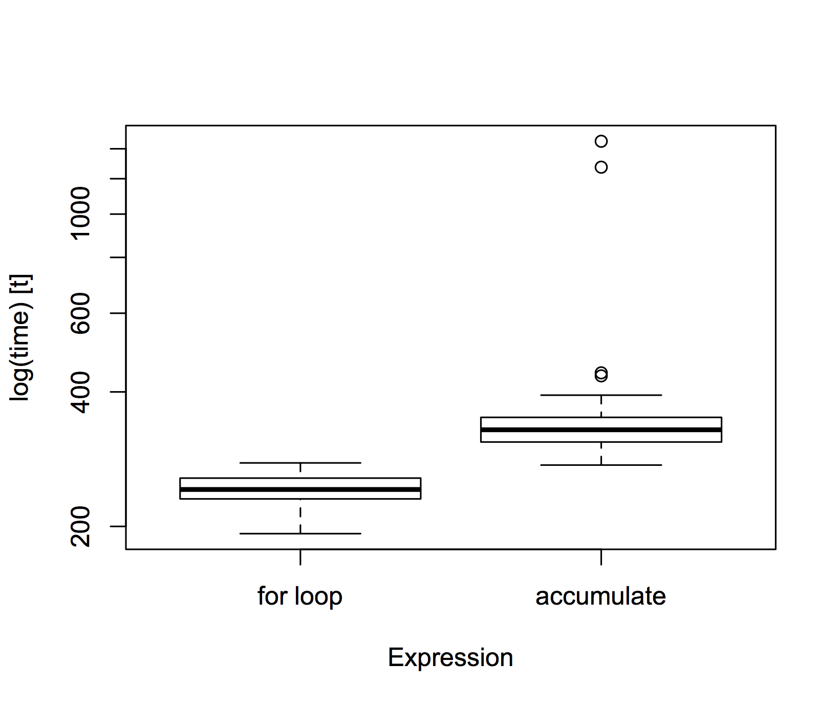 So they are equivalent. We can then test for computational efficiency using the microbenchmark package: