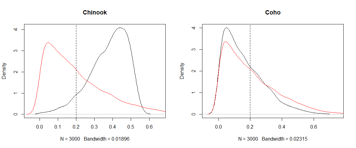 It is pretty clear that contributions for Chinook have shifted higher, whereas the data doesn’t give us much reason to believe Coho are any more important than the prior suggested.