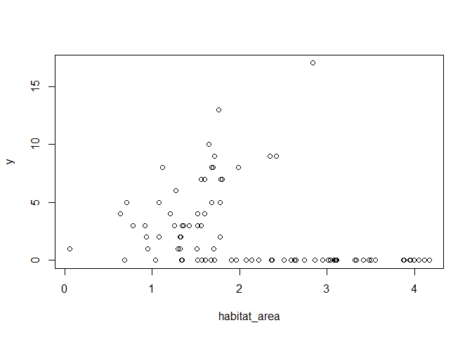 ## glm(formula = y ~ habitat_area, family = "poisson")