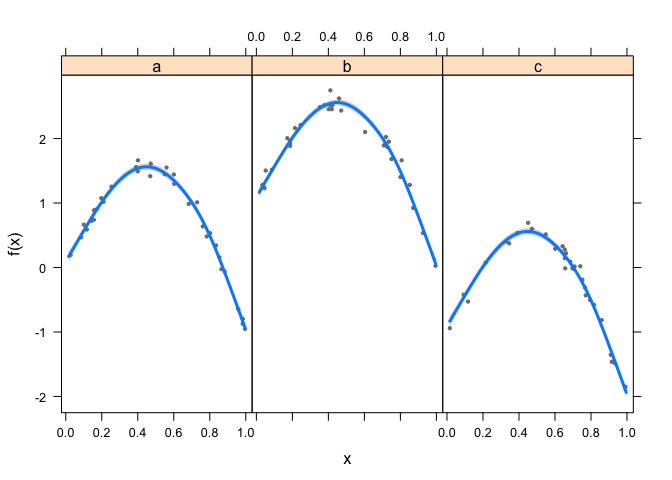 fit2 <- gam(y ~s(x, by = grp) + grp, data = dat)