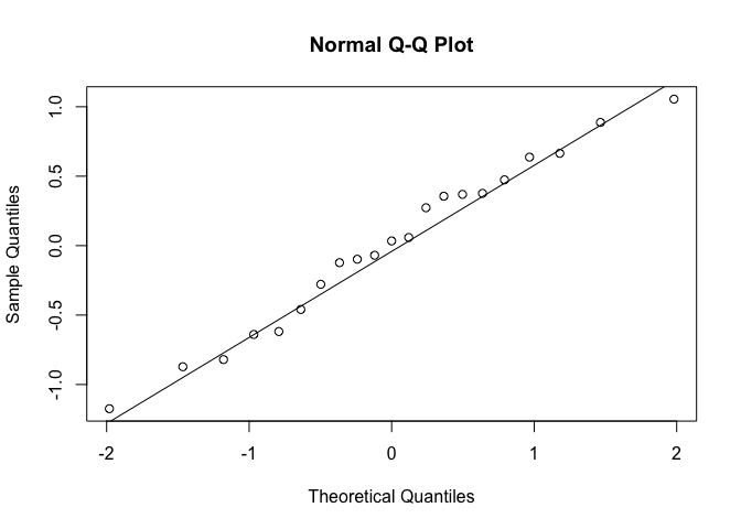 One way to check the normal distribution is appropriate for the NDVI data is to do a quantile-quantile plot of the residuals: